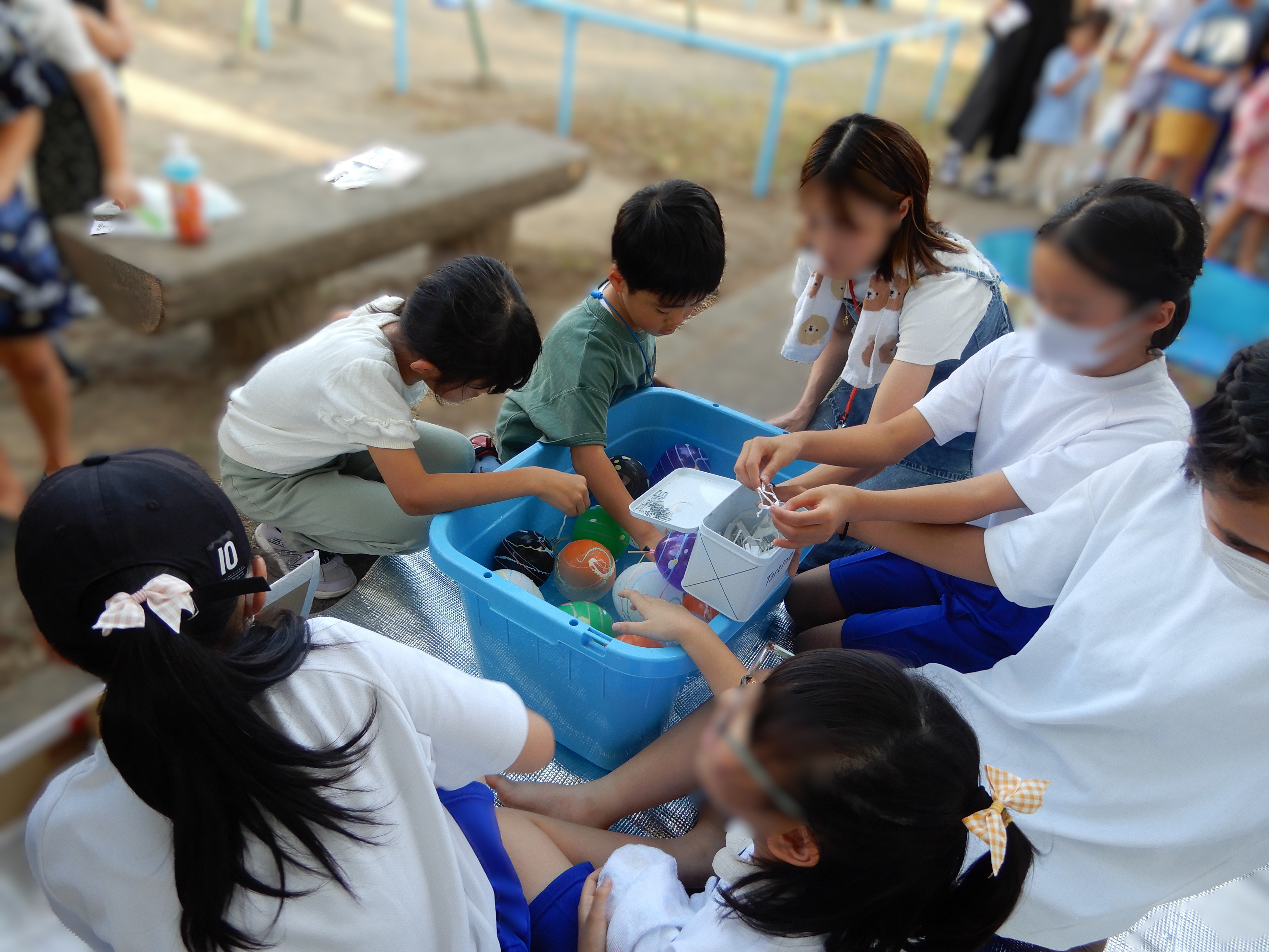 夏祭りスタッフを募り、今回はわなげ、ヨーヨー釣り、金魚すくい、駄菓子すくい、コイン落としのお店を出すことにしました。