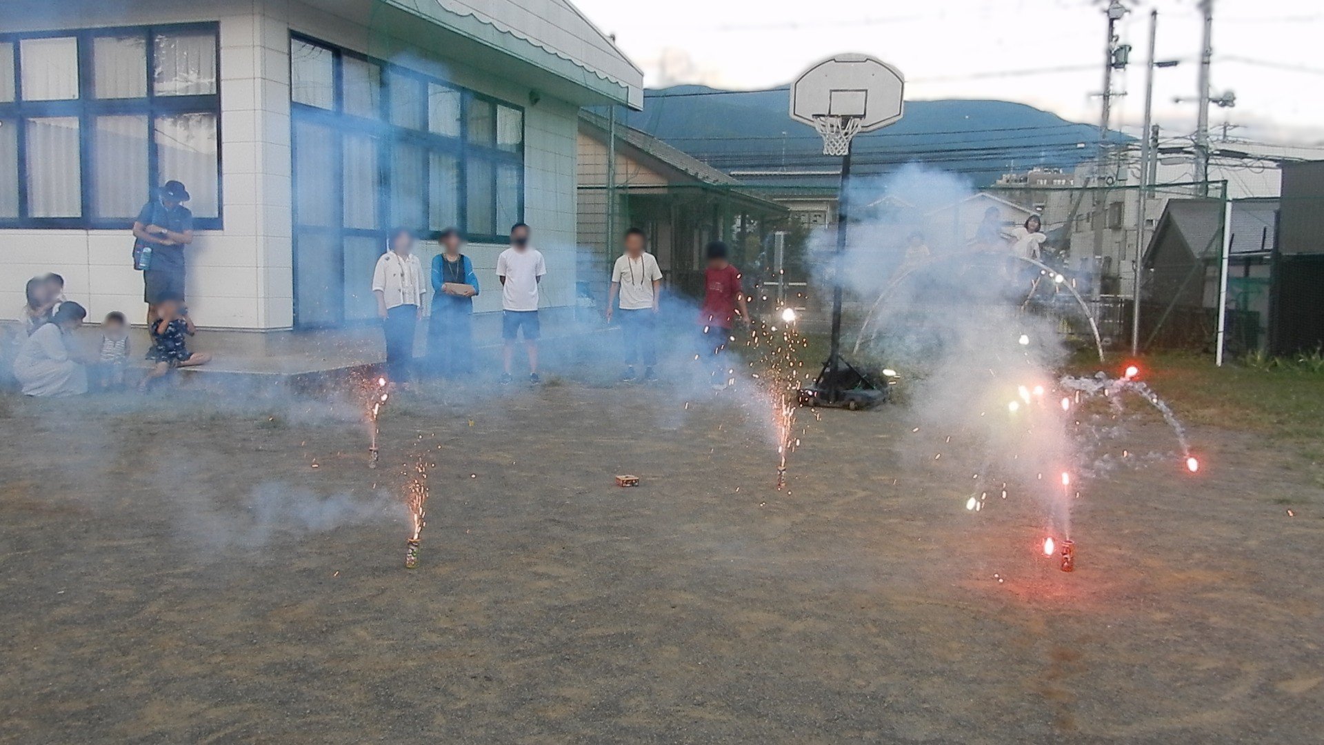 最後には花火タイムということで手持ち花火をそれぞれやり、そのあとはお待ちかねの吹き上げ花火を行いました。