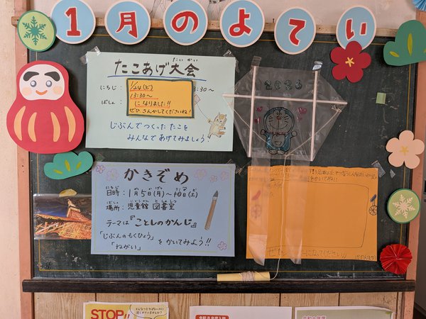 今月は、たこあげや書初めをしています。