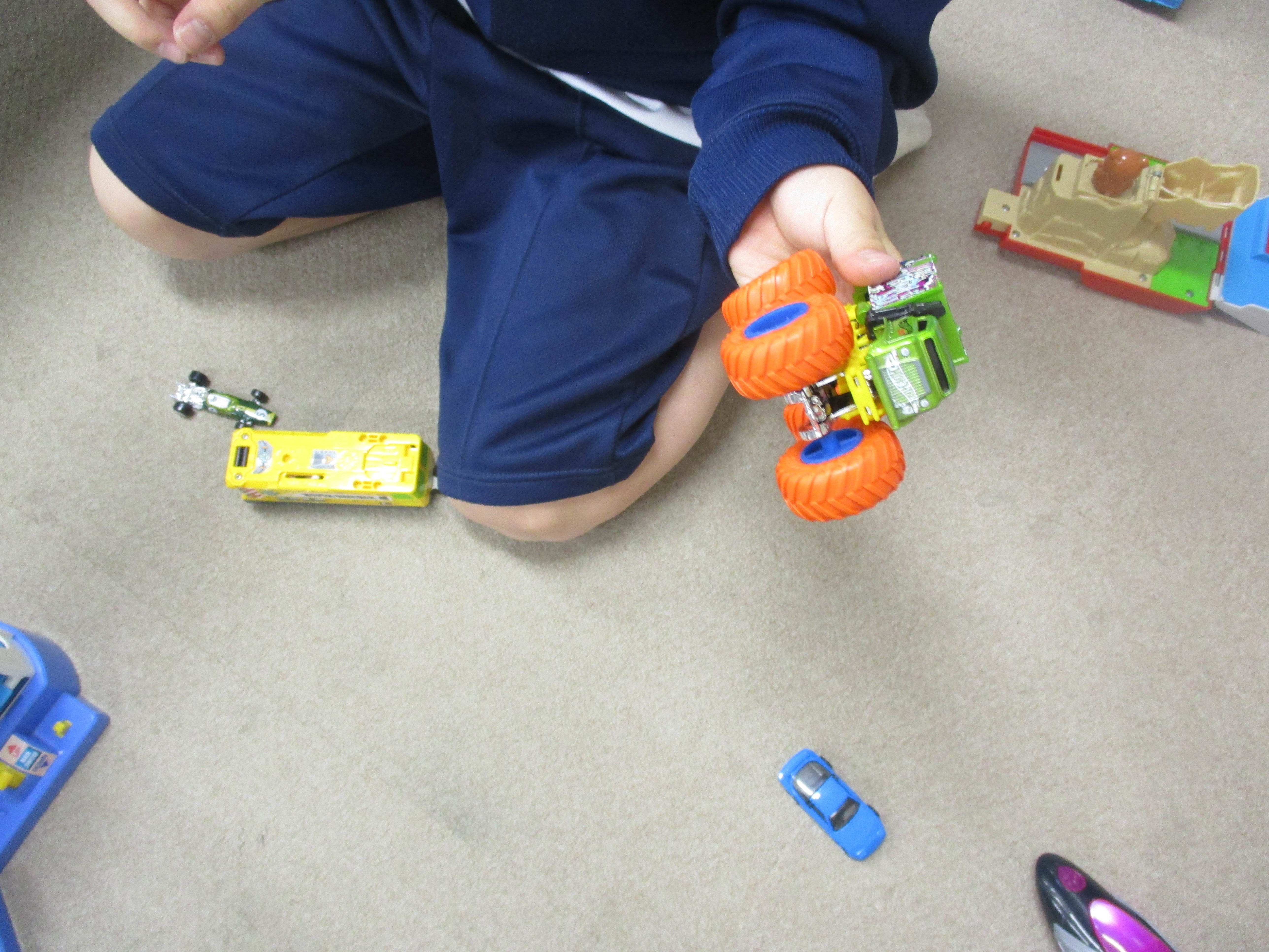 まず、マテル社さんからプレゼントしてもらった車のおもちゃをどこで遊ぶかについて話をしました